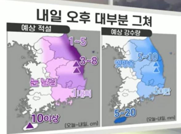 내일 오후면 이 눈과 비는 대부분 잦아들것으로 예상